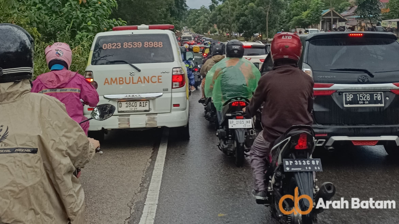BATAM, Arah Batam, 4 Agustus 2025 — Kemacetan parah kembali terjadi di turunan Bukit Daeng, Batu Aji arah Muka Kuning, Senin pagi (4/8). Ribuan kendaraan memadati jalur tersebut, terutama pada jam berangkat kerja. Kondisi lalu lintas makin memburuk akibat hujan deras yang mengguyur sejak pagi.
