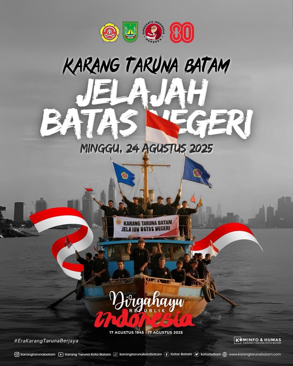 arahbatam.com, Batam, 08 Agustus 2025 – Dalam rangka memperingati Hari Ulang Tahun ke-80 Kemerdekaan Republik Indonesia, Karang Taruna Kota Batam menggelar kegiatan “Jelajah Batas Negeri” pada Minggu, 24 Agustus 2025 mendatang. Kegiatan ini bertujuan untuk menumbuhkan semangat cinta tanah air, bela negara, serta menjaga dan menghargai perbatasan Negara Kesatuan Republik Indonesia (NKRI).