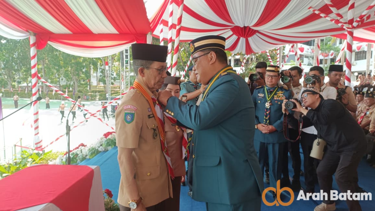 Dalam upacara tersebut, penyematan penghargaan dilakukan langsung oleh Wali Kota Batam kak DR. Amsakar Achmad,S.Sos.,M.Si. selaku Ketua Majelis Bimbingan Cabang, didampingi Wakil Wali Kota Li Claudia Chandra serta Kak Drs. H. Jefridin, M.Pd. Penghargaan diberikan kepada anggota dewasa yang telah mengabdikan diri bagi Gerakan Pramuka.
